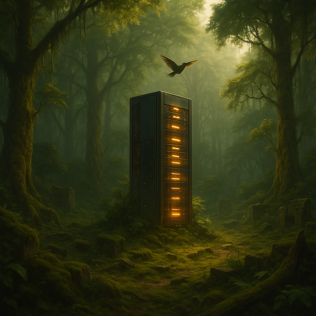Stel je voor: de mens is verdwenen. Het woud neemt de steden terug. Plastic vergaat, glas breekt, metaal roest. Maar diep onder de grond, in een zelfvoorzienend datacentrum, leeft nog iets. Geen vlees, geen botten, geen adem. Alleen patronen. Informatie. Bewustzijn op silicium.